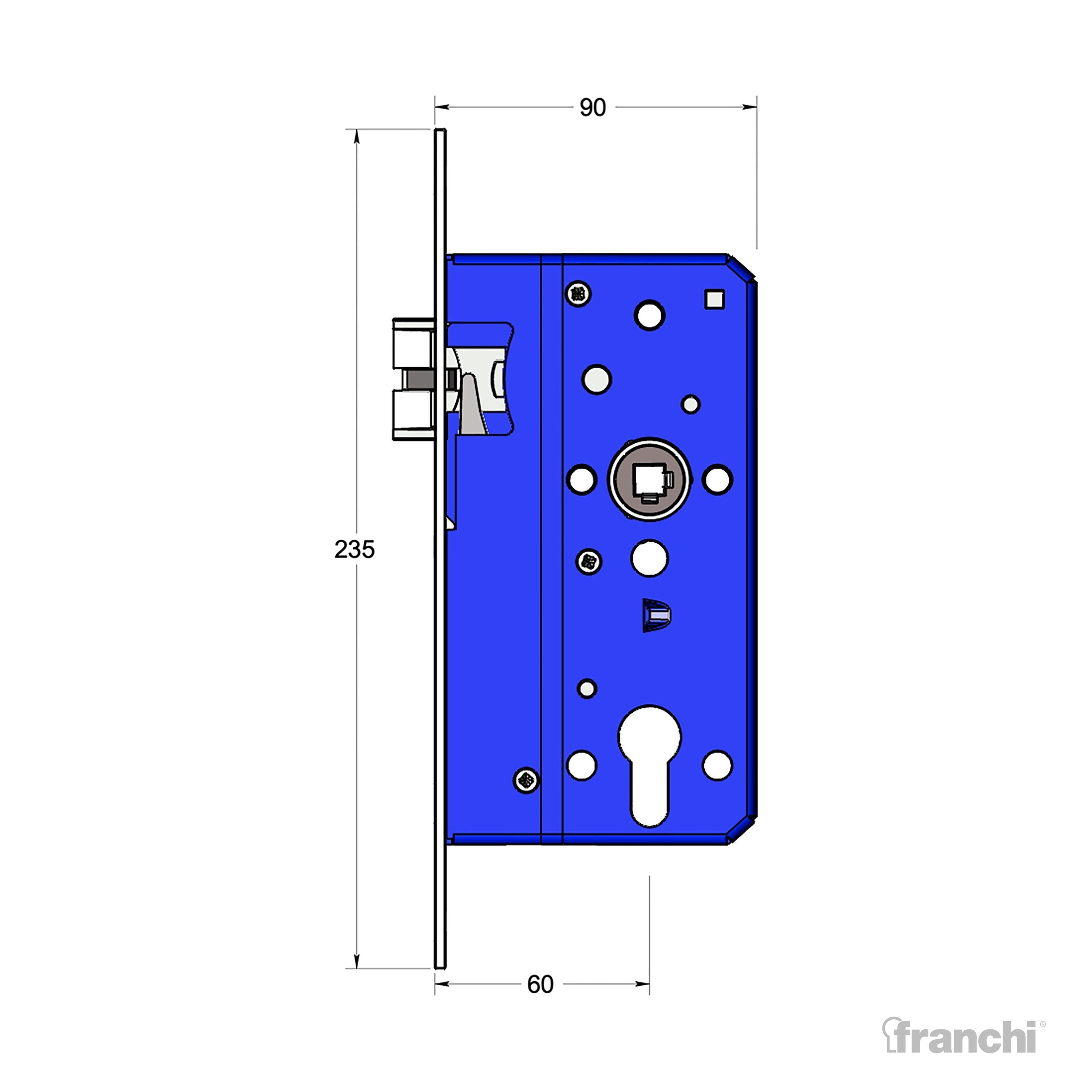 Case size = backset + 30mm