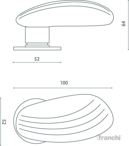 Solid contemporary lever handle on square rose with shell shaped organic grip.