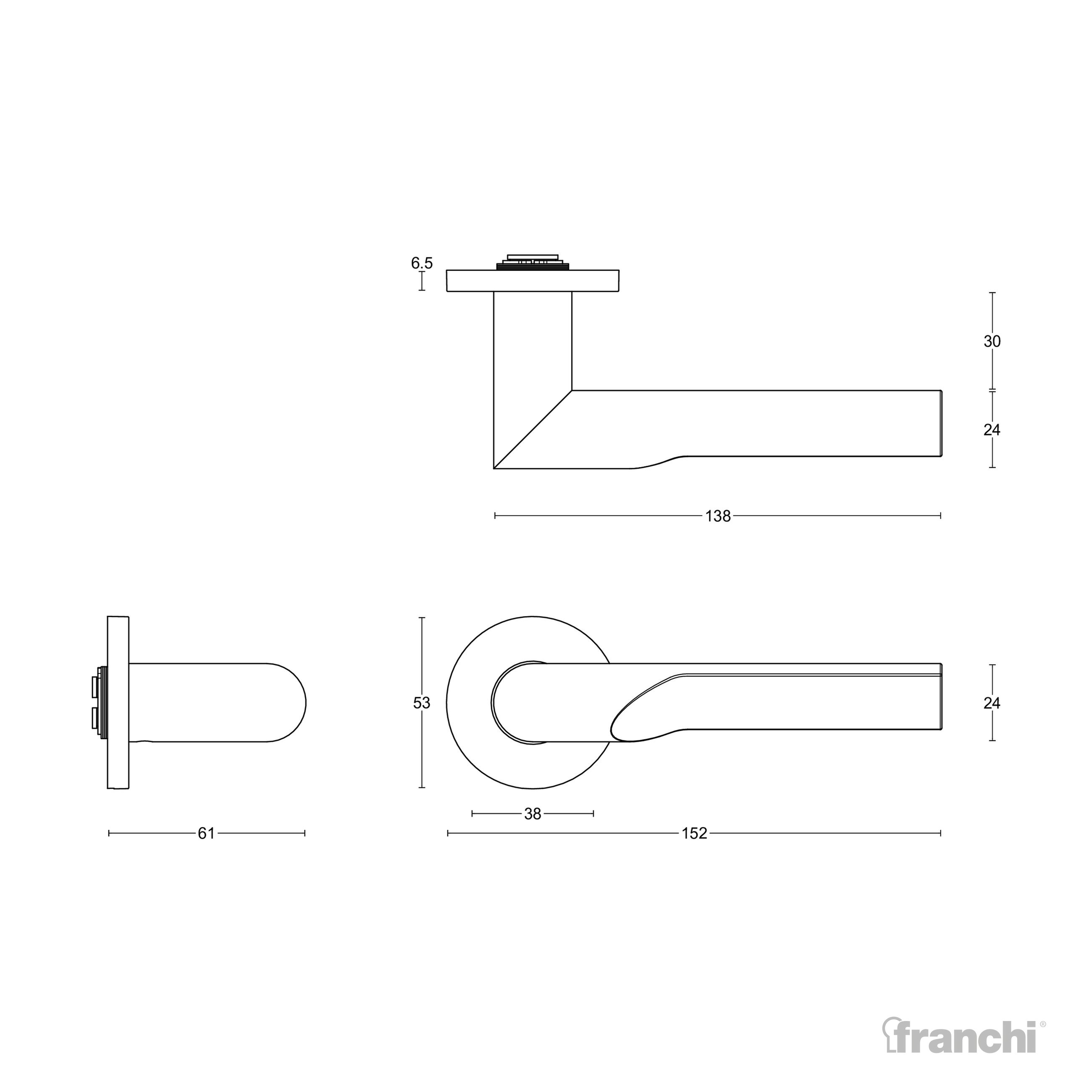 Available as standard on a sprung round rose, options include supplied with euro profile escutcheon, lever key escutcheon & WC & turn.